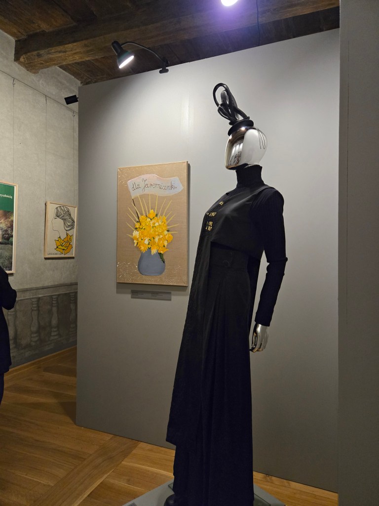 Szczególnie wyróżniają się wśród nich zaprojektowane przez Annę Marię Zygmunt kostiumy zainspirowane osobowościami trzech bohaterek Siłaczek. W przypadku stroju Zofii Stryjeńskiej pod szlachetnym, kaszmirowym płaszczem kryje się roboczy kombinezon – ubiór artystki pracującej, na której dzieła składa się nie tylko koncepcja i estetyczne wyczucie, ale także brudna, rzemieślnicza praca. Zdobiące go plamy z farby nie zostały rozmyślnie skomponowane, powstały w ramach twórczego przypadku i autentycznej pracy – projektantka ubierała go, malując aż do otwarcia wystawy. Maria Jarema otrzymała od projektantki elegancki strój z czarnym golfem, nawiązujący do ubioru, w którym została uchwycona na swojej najbardziej rozpoznawalnej portretowej fotografii, oraz fascynator, którego splątane formy przypominają abstrakcyjne kompozycje artystki oraz odzwierciedlają jej upodobanie do zaskakujących, ekscentrycznych nakryć głowy. Strój Kazimiery Bujwidowej tworzy nić powiązania między współczesnym feminizmem a działalnością na rzecz równouprawnienia, którą przed wiekiem prowadziła inspiratorka kostiumu. Jej żabot zdobią ręcznie wyhaftowane litery składające się na słowa „prawa kobiet”, spódnicę spinają przypinki z czerwonymi błyskawicami. Umieszczenie na wystawie odbywającej się w tak dużej instytucji publicznej znaku rozpoznawczego Ogólnopolskiego Strajku Kobiet to odważny gest, który niezmiernie miło zobaczyć; nawet jeśli w innych częściach ekspozycji w oczy rzuca się pewna zachowawczość podejścia, objawiająca się między innymi określeniem Marii Dulębianki „serdeczną przyjaciółką” Marii Konopnickiej.