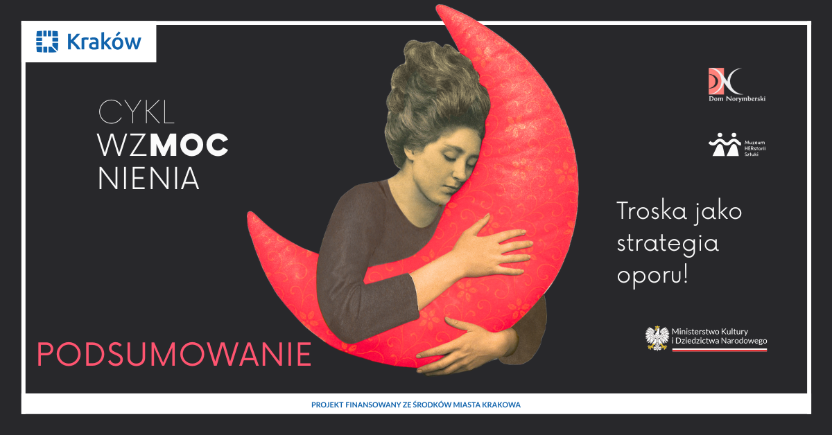 Kiedy wraz z Radą Młodych pracowałyśmy nad warsztatem o postrzeganiu piękna oraz cielesności, narodziło nam się przewodnie pytanie: “Co mówi do mnie moje ciało?”. Jego zadawanie może być niezwykłym procesem poznawania siebie… ale czy tak naprawdę jesteśmy gotowe na odpowiedź? Systemowo uczy się nas tego, by odwracać wzrok od własnego ciała, szczególnie wtedy, gdy nie mieści się ono w normach czy wzorcach, tworzonych na podstawie męskiego doświadczenia. Ciała, które odbiegają od tego „standardu”, bywają bagatelizowane, a przeżycia z nimi związane są pomijane. Kobiecość nigdy nie miała statusu uniwersalnego doświadczenia, nie była przedmiotem refleksji, a jej przejawy – takie jak menstruacja czy cykliczność – skazane były na przemilczenie i wstyd. To dlatego często nie słyszymy własnych ciał, choć one cały czas próbują do nas mówić. „Cykl Wzmocnienia” był próbą przełamania tego milczenia. Zapragnęłyśmy rozszczelnić zastane narracje i skierować uwagę ku cielesnym doświadczeniom: ich znaczeniom, odczuciom, rytmom. Kiedy artystka Iza Moczarna – Pasiek i kuratorka Zofia Reznik zaprosiły nas, Muzeum HERstorii Sztuki, do współtworzenia programu wokół wystawy, odkryłyśmy, jak ogromną pracę wykonały w zakresie oswajania tabu menstruacyjnego i przywracania wartości doświadczeniom płynącym z krwawienia.Naszą odpowiedzią stały się wydarzenia zebrane pod wspólnym hasłem „Troska jako strategia oporu”. Chciałyśmy pokazać, że dbanie o siebie, uważność na ciało i jego potrzeby mogą być gestem niezgody na marginalizowanie i narzucane normy. To sposób na odzyskanie sprawczości i siły, które można czerpać z własnego, cielesnego doświadczenia.